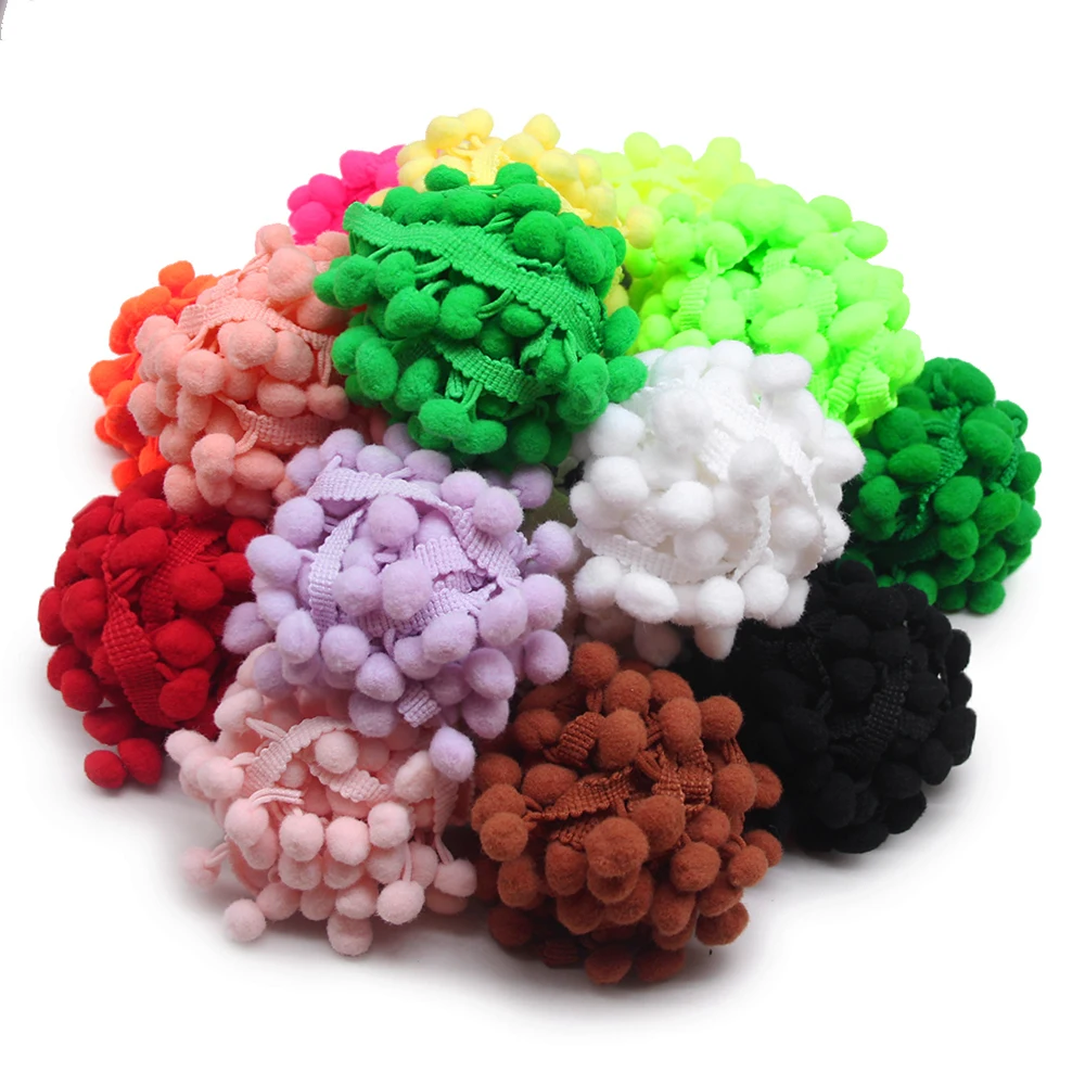 12mm Pompom Trim Pom Pom Bobble Braid Tassel Ball Fringe Ribbon Lace Fabric DIY Material Crafts Sewing Accessories 5yards/lot