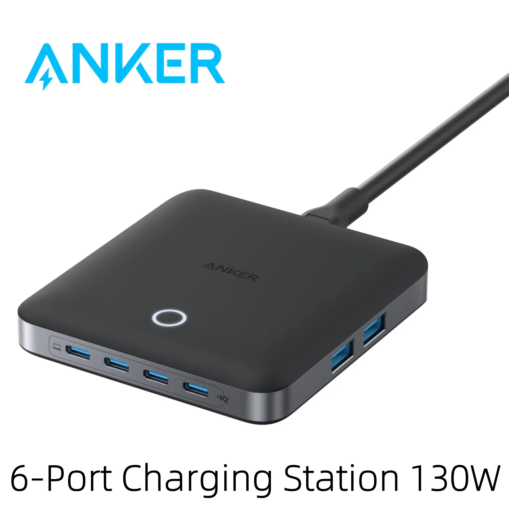 Anker Nano Charger, 6-Port Charging Station with Ultra-Fast 130W Output, 4 USB C, 2 USB A Ports, Compact and Stylish, for iPhone