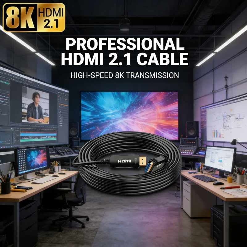 An optical HDMI 2.1 cable supporting 8K at 60Hz and 4K at 120Hz/144Hz, suitable for high-quality video.